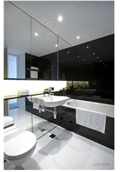 其次,小面积卫浴间应把灯具安装在天花板正中央,这样可光芒四射,给空间以扩大感。大面积的浴室可在浴盆和洗脸盆上方安装下照灯,并在镜子周围安装化妆灯,使其透露出高雅和温馨。浴室镜子的照明灯具应安装在眼睛之上的位置,且左右对称布置。全面照明可以用壁灯、吸顶灯、嵌灯等。另外,灯具一定要有可靠的防水性和安全性。外观造型和颜色,可根据自己的兴趣及爱好来选择,但要与整体布局协调。