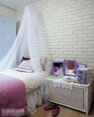 就一般床的构造而言,床头的高度欠缺气势。因此,对床头的那面墙有必要进行特别的装饰,如用板材或装饰布等,装饰出几平方米的面积;此外,用纺织面料制作的床头的“床幔”,好似人的头饰,大有可为,如用窗帘布垂挂、对开等造型,犹如给床戴上了花头巾。