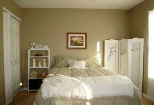 与床头相对的那里墙,最好不要放过多、过高的家具,避免“堵 ”的不良视觉效应。如果床对面的家具上有通体的大镜子或墙上装一面大镜子,即可扩张空间,又映出床头的景色,悦目心舒。此外,床对面贴张大的风景画,也很开眼界;在床尾的地面上铺一小块工艺地毯,效果挺不错。