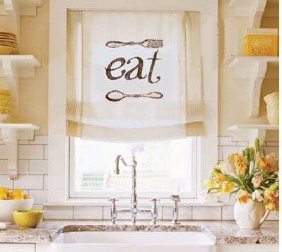 要加宽罗马帘,首选剪些条纹布,长度相当于你实际装饰的2倍(这里选的是20厘米长),对折熨烫长边,然后折0.3厘米毛边继续熨烫。把烫好的毛边粘到窗帘上,一头粘正面,一头粘背面,轻轻重合。用你喜欢的字体,每张纸印一个单词。你可上网或到剪贴画里找到银餐具的图案,并用复印机放大复印。把放大好的图案放在窗帘下用铅笔构出轮廓,按阴影轮廓以黑色布料马克笔描好。将窗帘挂好并用大头钉把装饰固定在窗户上。
